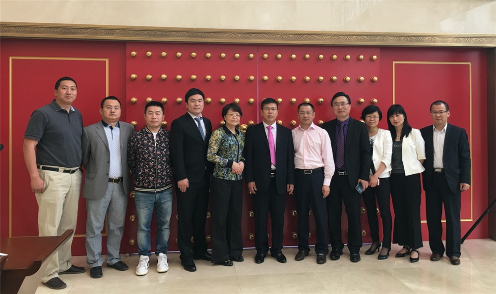 (中间:VSport公司董事长刘国鹰先生,左一:西班牙PE公司化勇先生,左二:VSport北京经销商总经理胡斌先生,左三:卓中资本于洋先生,左四:VSport公司董秘吴海龙先生,左五:桐乡市人民政府副市长潘敏芳女士,右五:桐乡市科技局局长卢爱驰先生,右四:桐乡市委人才办副主任卜掌浩先生,右三:桐乡市人民政府秘书张丽萍女士,右二:桐乡市科技创业园主任倪勤华女士,右一:国联证券机构业务负责人姜亦民先生)